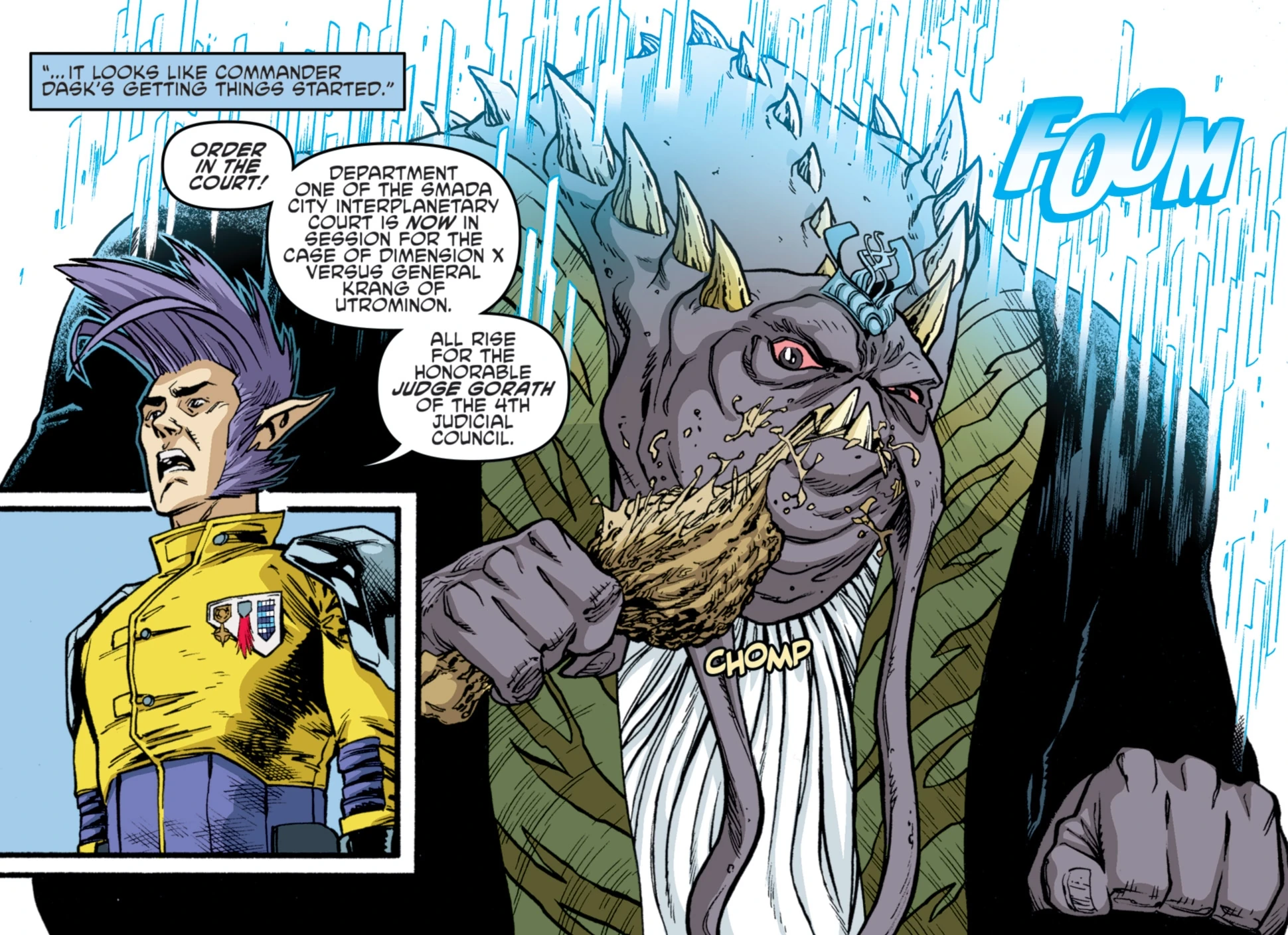 Судья Горат был судьей, который появился в Подростки Мутанты Ниндзя Черепашки (комиксы IDW) Том 1 74, где он в своем логове был убит Хакк-Ар. Его труп находят Донателло и Фугитоид в Подростки Мутанты Ниндзя Черепашки (комиксы IDW) Том 1 75.