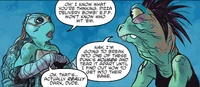 ...And Out Came the Reptiles is a story arc in the IDW continuity. In the story, Mondo Gecko and Michelangelo set out to find the technology that will save the life of their friend Seymour Gutz.