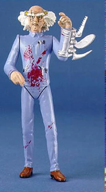 Images from the Toy Fair ’98 Playmates catalogue reveales an unreleased action figure of Dr. Quease. He looks like he may be holding some kind of pincher-like projectile launcher. His scalpel-like arm weapon appears to have been a clip-on.