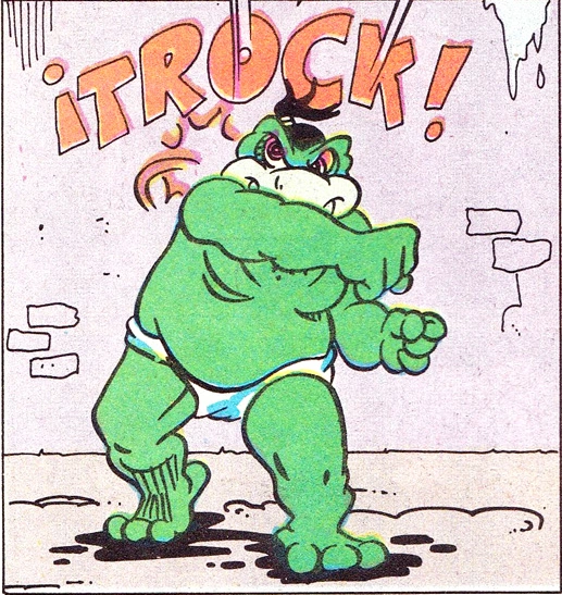 Later, after the Tortugas go with Moycat back to Magard to liberate the people from Glutter, they encounter El Gran Bonzo again. He explains that he's turned against Glutter after the way he was treated, and now teams up with Moycat and the mutants to fight Glutter's soldiers. When the Tortugas and Moycat discover a way to infiltrate Glutter's palace, El Gran Bonzo offers to hold off the dictator's forces so they can safely do so.