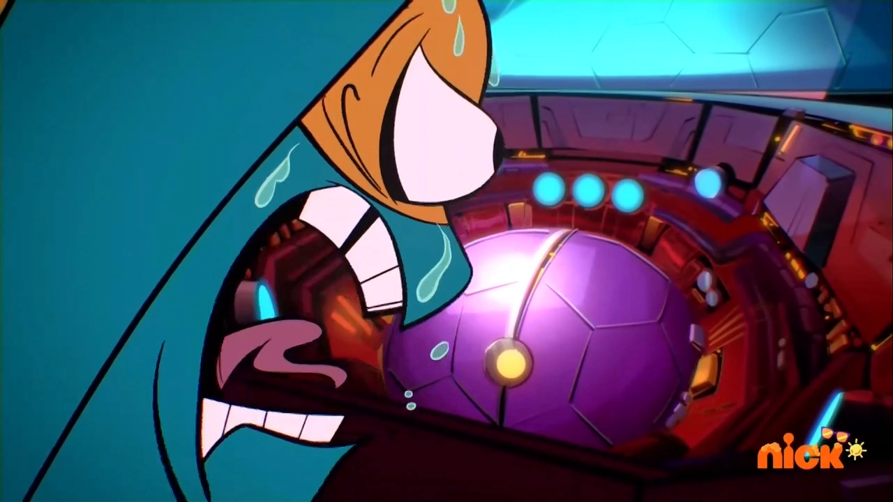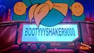 The Turtles leave to find the giant mech on the loose and are ready to fight it. Donnie, however, doesn't show up, and sends S.H.E.L.L.D.O.N. in his stead, much to Raph's fury. They attack the gigantic robot, and Mikey climbs up to its head to see who is controlling it. He is shocked to discover that the cabin is empty, but sees the name "Bootyyyshaker9000" on the dashboard. The Mad Dogs then realize that the mech is actually better controlled by Donnie through the game. Cutting back to Donnie, the game shows him this whole situation as though his character is being 'attacked' by three annoying cuddly bears. Leo thinks he can make Donnie aware it's them by excitedly shouting and waving his arms, but in the game, this only translates as a few cute squeaks from the bear. Donnie mockingly says he'd give the game credit for solid writing and starts to attack the bears (or his brothers in reality) more violently, as the game encourages him not to loose his number one rank.