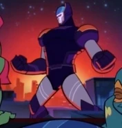 After the Mad Dogs discover that a giant mech is attacking the city, Raph tries to persuade Donnie into fighting the giant mech with them, even stating that they need him. Donnie casually promises he will be there in a moment.