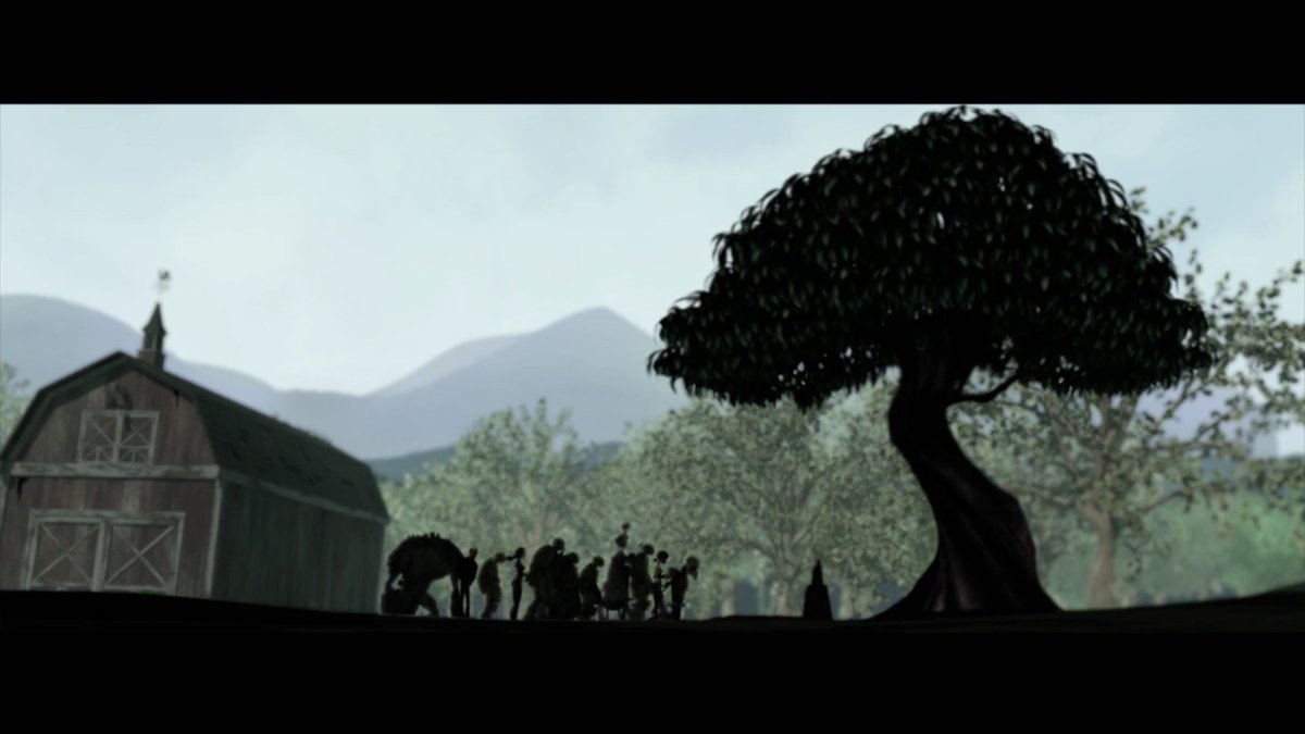 Spirit of Hamato Yoshi/Splinter witnessing the end of Oroku Saki/Super Shredder at the hands of Leonardo.