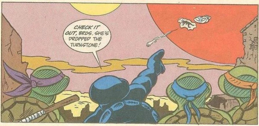 Once morning arrives Michelangelo notices the star being red, while Cherubae explains it's because its much older than the Sun, which indicates the star was once a yellow dwarf star, just like the Sun and has went through the same phase scientists believe the Sun will undergo in the distant future.