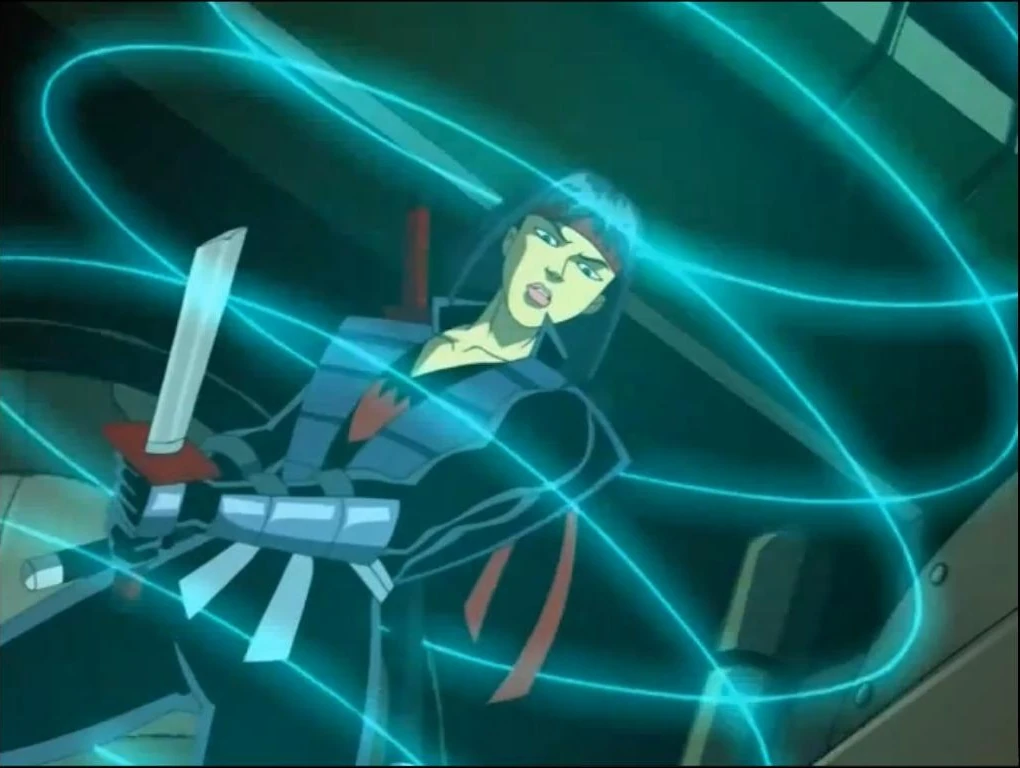 Open with Karai infiltrating a high security warehouse. She sneaks through various obstacles using high tech gadgets to counter the equally advanced security. Karai uses a gas grenade to defeat a group of Bishop’s guards. Finally, the ninja makes it into a vault containing a computer chip, but when she attempts to grab the component, an alarm goes off. Karai escapes the vault's defenses, but as she leaps into the main room, Agent Bishop traps her using a deadly force field created with alien technology. Bishop then contacts Oroku Saki and offers him a trade - Karai for all of the alien technology that he has been amassing since the Triceratons left Earth. Bishop gives Saki 45 minutes to comply with his demands, or Karai will be killed.