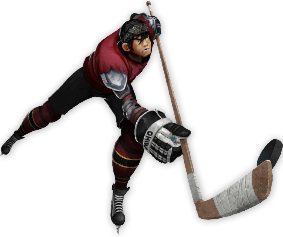 Casey Jones of the 2012 TV series, playing ice hockey with stick and puck.