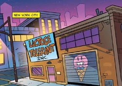 In Rise of the Teenage Mutant Ninja Turtles, Lactose Tolerant Inc is an ice cream vendor in New York City. At the beginning of Sound Off! part 1, Gned, Gnarly, and Gnatalie break into the facility to steal the ice cream trucks.