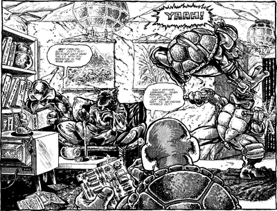 - Their first sewer lair, where Splinter raised the turtles from early childhood. This was partially destroyed by Mousers in the second issue, and had to be abandoned. It was later given to Leatherhead after the destruction of his previous lair.