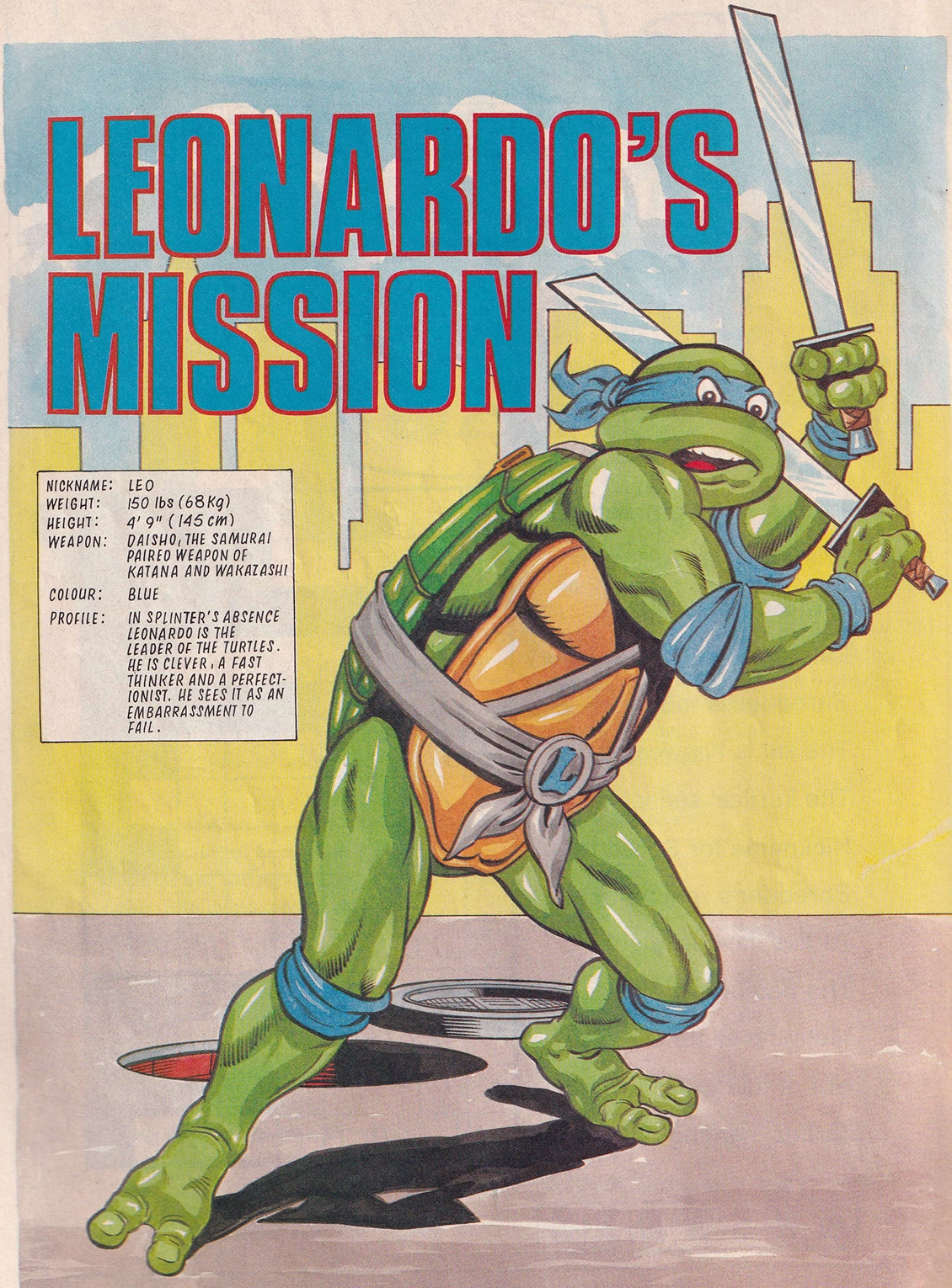 Leonardo's Mission is a Teenage Mutant Hero Turtles comic. It was first published in Teenage Mutant Hero Turtles Holiday Special issue 2 in May 1992.