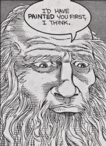 In the Mirage Guest Era story "Juliet's Revenge", Savanti Juliet summoned a quartet of notable figures from history to confront the Turtles: Bruce Lee, Mae West, Robert E. Howard, and Leonardo da Vinci. Naturally, da Vinci faced his namesake, defeating him with nothing more than a paintbrush, by painting a swirl on his plastron.