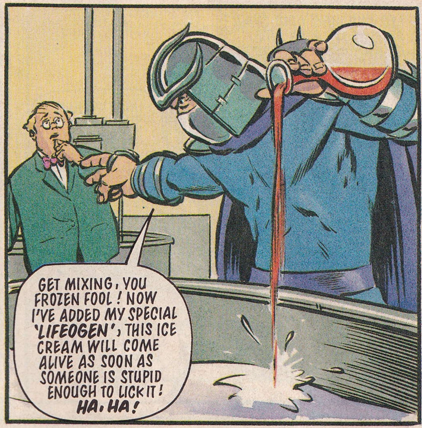 When free ice cream cones given out around the city begin coming to life, and even the Turtles are attacked by an Ice Cream Creature in their own lair, the green team heads out to investigate. They pick April O'Neil up in the Turtle Van and go to the Creamy Cones factory. Though Uncle Creamy denies anything untoward is happening there, he slips a key into April's hand before going back inside the building. The key opens a back door and the Turtles and April enter. They reach the mixing room and from a hiding place, spot Shredder threatening Uncle Creamy by reminding him that Bebop and Rocksteady are holding Uncle Creamy's granddaughter. Shredder proceeds to add a substance called "Lifeogen" to the ice cream vat and explains that this will cause the ice cream to come alive as soon as someone licks it. The Un-Nice Ice-Cream Scheme!