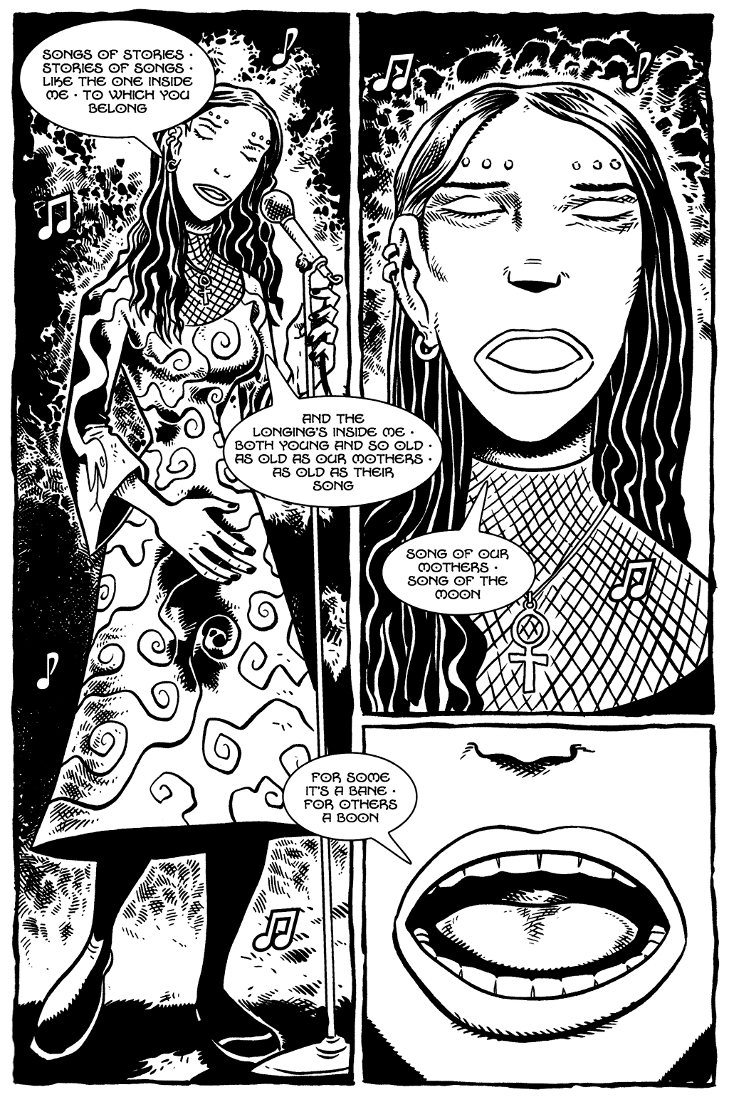 In the Mirage continuity, Lilith is a werewolf and pack leader of the Sisterhood. But in her human appearance, she is also a musician popular with teenage goth girls. She appears in Tales of the TMNT volume 2, issue 7: Darkness Weaves, and makes later appearances in the miniseries Raphael: Bad Moon Rising.