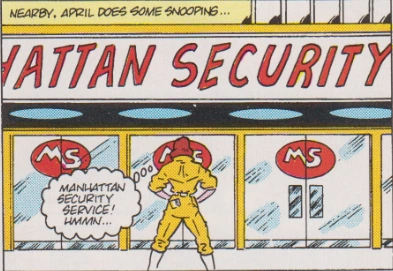 The Manhattan Security Services is a company in the New York City borough of Manhattan, which serves as a front for the Foot Clan. Run by Shredder, it appears in the Heroes in a Half-Shell! Part 1 issue.