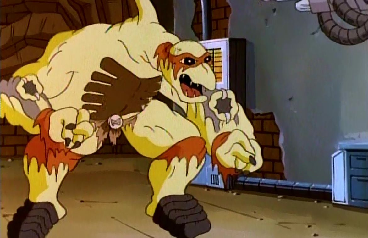 - Enhanced endurance: Michelangelo's muscles and bones are much harder/denser than normal humans. Michelangelo can survive getting caught in the crossfire from all angles from Bebop and Rocksteady's blasts, as well as enduring a collision when Rocksteady charged at him at full speed, and take a beating from Bebop (which only knocked him out cold briefly). Mickey can also withstand multiple hits from Footbots, Shredder, and Krang.