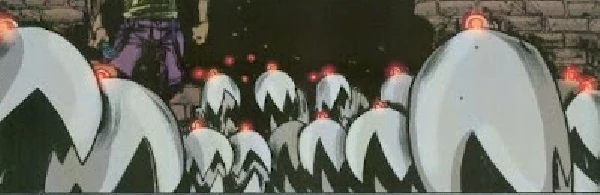 The M.O.U.S.E.R.s reappeared in the aftermath of the Triceraton invasion, where April O'Neil convinced Stockman to use them to kill the Rat King's rats. The robots intervened during a battle between the Rat King and the Turtles, and killed the rats.
