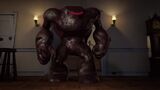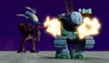 The Neutrinos are large, red, and bulky aliens with one red eye on their head.