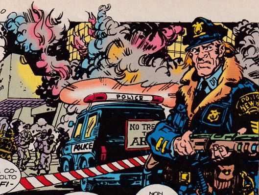 The New York Police Department, also known as the NYPD, is the primary law enforcement establishment of New York City. In her quest for stories, April O'Neil often runs afoul of the NYPD captain, a man named Stearnes. Because she is tenacious, Stearnes finds her to be a constant irritant. However, he eventually learns that she has "special friends" who are able to assist the department and a tenuous bond is formed with both April and the Tartarughe Ninja.