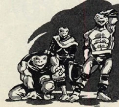 The Ninja Turtles in the story Road Hogs are a team led by an elderly, senile Raphael. The other three members of the team were not given names, but one appears to be female.