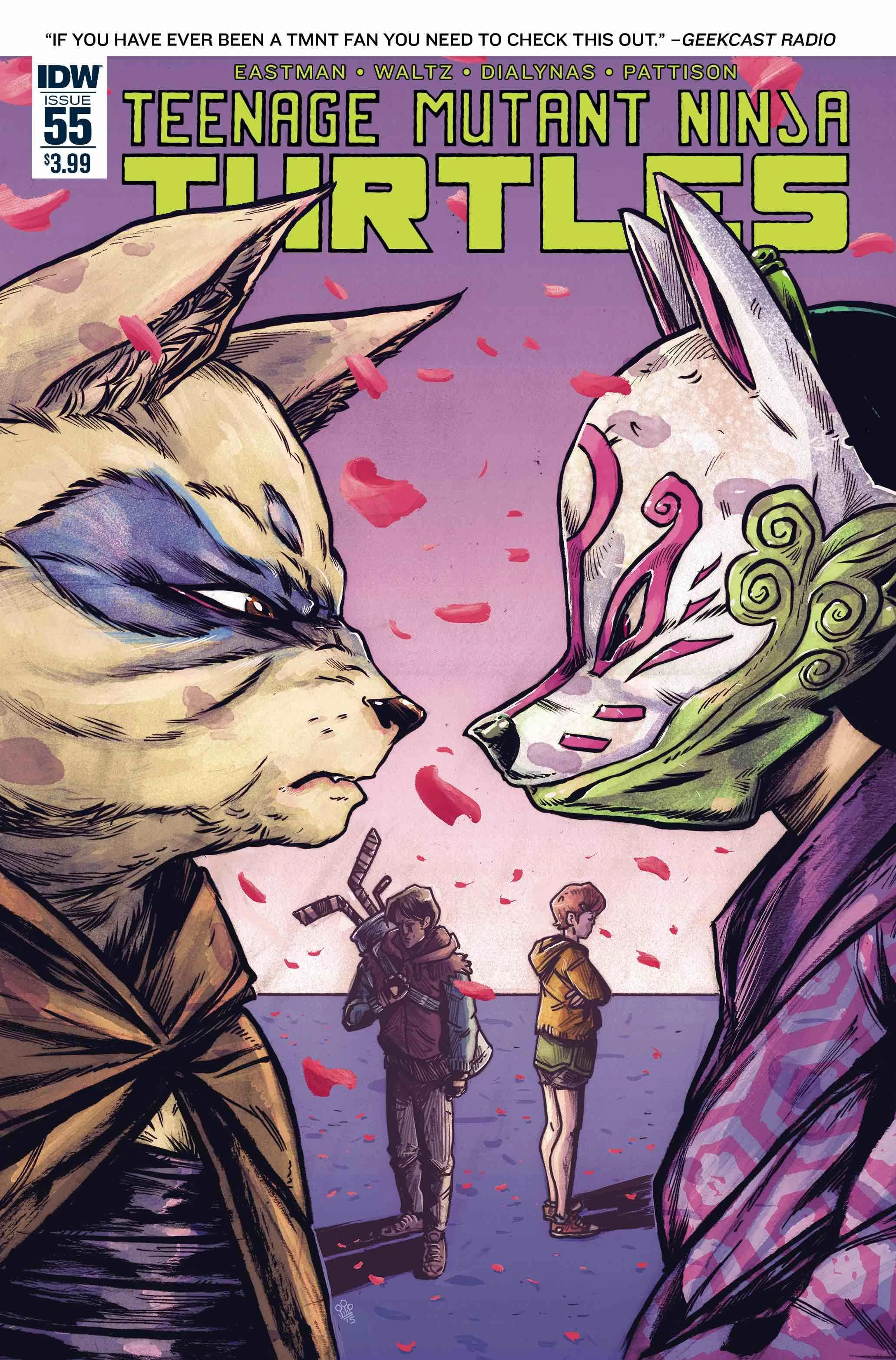 At the Foot Clan’s headquarters, Splinter enjoys some tea and toast. Splinter reminisces about a conversation he had with Kitsune earlier, wherein he asked her for information about she and her brethren’s great game. Kitsune tells Splinter that he is overreacting, that their game is merely an amusement, but he tells her that he will not tolerate any manipulation on her part. Kitsune assures him that they share a common goal of restoring the Foot Clan to glory and power, and that he should be mindful of real threats.