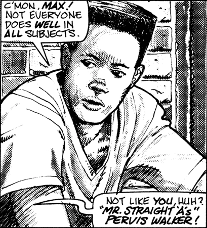 Pervis Walker appears in the Mirage comics and is a straight-A student from Arkham, Massachusetts. His best friend is Maximillian Jones, whose academic record is the opposite.