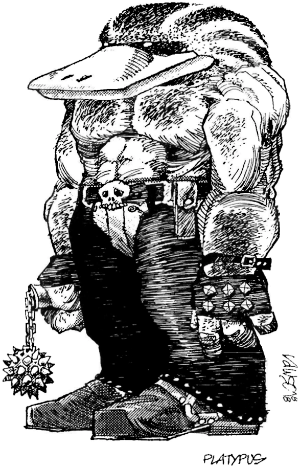 Mutant platypus artwork in Mutants Down Under, drawn by Jim Lawson.
