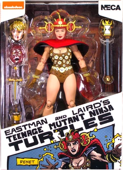 Based on the classic Teenage Mutant Ninja Turtles comic books from Mirage by Kevin Eastman and Peter Laird! This apprentice Time Master prefers playing hooky to hitting the books, and meets the Turtles while skipping out on her studies. But Renet has a lot to learn before she can become Mistress of All Time, and proceeds to lead them on a merry misadventure! The Renet action figure stands approximately 6" tall, and includes soft goods cape, interchangeable heads and hands, Time Scepter, assorted weapons, and more! Comes in special comic-book tribute window box packaging illustrated by Kevin Eastman.