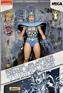 The Renet action figure stands approximately 6" tall, and includes soft goods cape, interchangeable heads and hands, Time Scepter, assorted weapons, and more!