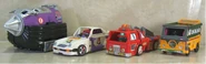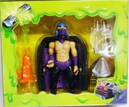 Clear the sidewalks, cuz Shredder's behind the wheel-in fact, he is the wheel! Shredder's tired of lettin' his mindless minions have all the fun, so he's Mutatin' himself into the Mutant Module. Just a little Ooze, mixed in with a dash of motor oil, a twist here and a crank there, and you can Mutate this ghastly guy into a gas-guzzlin' goon. Shredder's behind the wheel and totally in charge of the dirt-diggin' demolition Mutant Module machine. He's wheelin' 'n diggin' out damage as fast as he can Mutate! And when he's ready to fight, he Mutates back into his horrible, helmeted self. But wait, there's more! Shredder would never drive around empty-handed, or empty-wheeled- and that's why he has his Mutatin' weapons 0' destruction. Just look at his Mutatin' Jack-one second it's a jack, the next it's a lethal lube gun! And his nose drill shield is designed specifically to slice 'n dice Turtles at top speed. So Turtles beware--there's a new Mutation on the block. And, why, yes, in fact, he does own the road!
