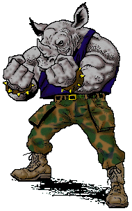 In the three-issue miniseries that adapted the first five episodes of the cartoon, Rocksteady was once again a human punk working for the Shredder who was mutated into a rhinoceros while his partner Bebop became a warthog.