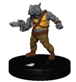 Rocksteady is a Heroclix figurine in the second set release, Heroes in a Half Shell. It is based on his 1987 animated series incarnation. This set had a release date of October, 2016.