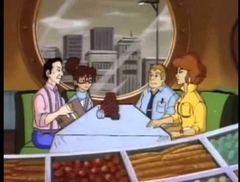 A seafood restaurant appears in the 1987 cartoon episode 20,000 Leaks Under the City. April O'Neil, Irma, Burne Thompson and Vernon Fenwick celebrate Burne Thompson's 50th birthday there. The restaurant is heavily seafaring-themed, for example the windows are round as often seen in ships.