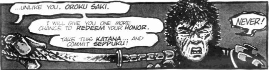 In the first Mirage comic issue, Leonardo commands Oroku Saki to commit seppuku, which he declines in favor of attempting to take the Turtles with him in the form of a thermite grenade. A Foot Elite also kills himself with Raphael's sai in "City at War, part 6 of 13", and another one, Tomei, kills himself with his tantō in "City at War, part 11 of 13".