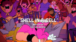 During their bickering, Leo falls into the ring, landing right on Ghostbear and knocking him out, his hand falling into Jessica Jaclyn's and lifted. He is instantly declared the champion of the match and handed the belt, then walked off to become the next Champion. Despite his low opinion of wrestling, Leo is all too happy to have his ego buffed and receive the perks, given the stage name of 'Primetime', Raph, Donnie and Mikey go after him to stop him from giving them all away.