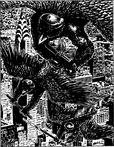 In Teenage Mutant Ninja Turtles & Other Strangeness by Palladium Books, the Sparrow-Eagles are a team of three teenage mutant ninja sparrows, written as supplemental characters for the role playing game. The tutorials provided in TMNT&OS showcase the Sparrow-Eagles as an example of an originally-designed team of mutant ninja that players could create using the game's character creation system. This not only made the Sparrow-Eagles memorable to the game's learners, but indelibly associated them with TMNT tabletop role-playing. The Sparrow-Eagles are not associated with any particular pre-written role-playing scenario. And despite the team's name, none of them are eagles.