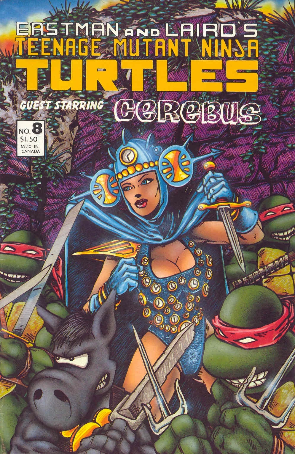 Eastman and Laird's Teenage Mutant Ninja Turtles volume 1 issue #8, later retroactively titled Team Up with Cerebus, was published in July 1986 by Mirage Studios.