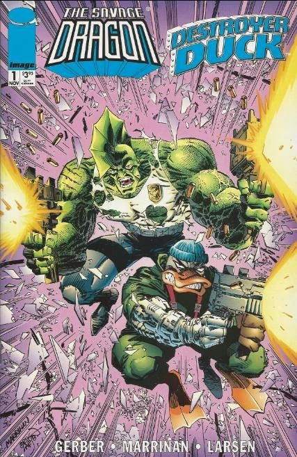 - This issue also includes two articles: "The Never Ending Battle” by Larsen, and “Foul Play: The Behind-the-Scenes Story of Savage Dragon / Destroyer Duck #1” by Gerber.
