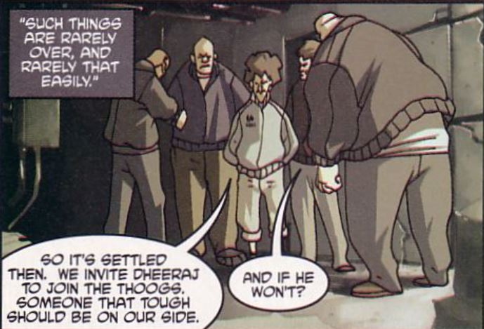 The Thoogs are a psychotic small-time street gang obsessed with resurrecting ancient Hindu gods, like Kali the goddess of destruction. The turtles were able to scare them straight though by pretending to be Kali. They appear in the Dreamwave comics.
