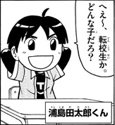 Urashimada Tarō (浦島田太郎) is the student responsible for showing the school to Leonardo after he got transferred from the United States of America in Mutant Turtles: Ore Tacha Kame na 4 Shinobu-gumi.