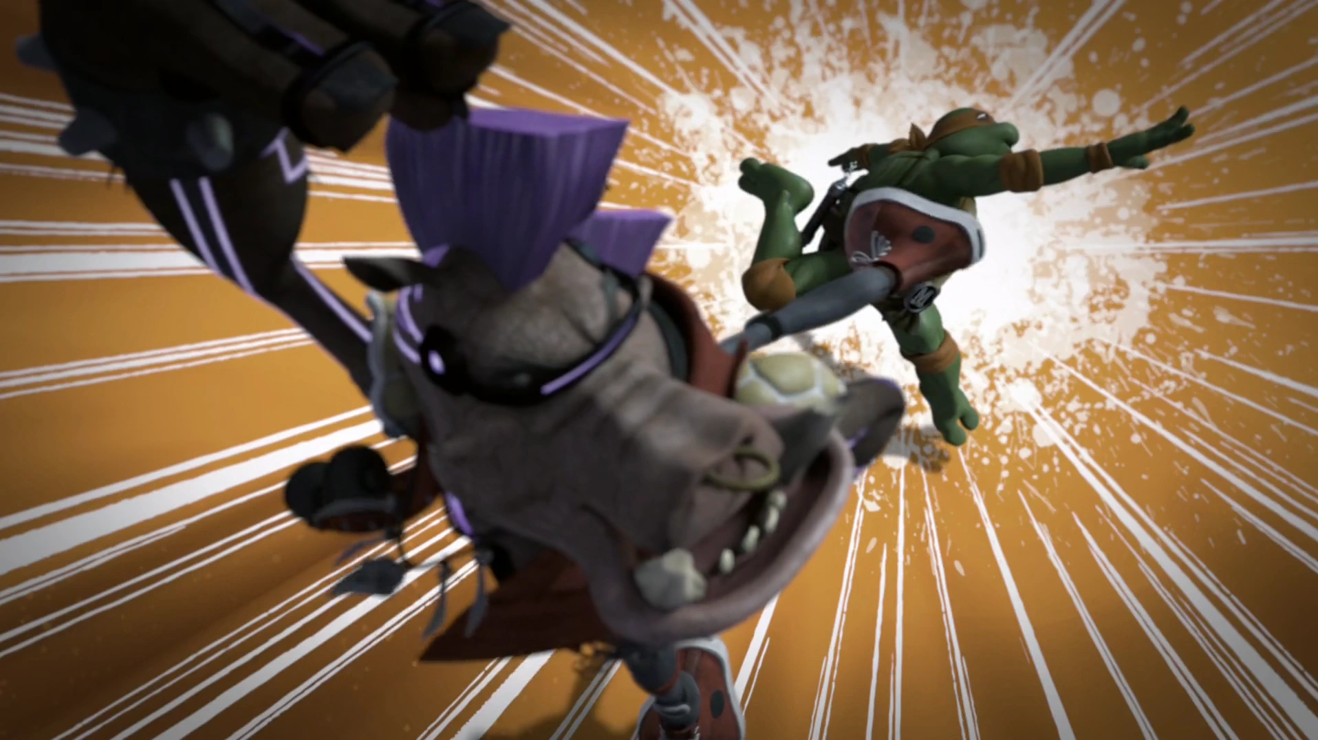 When Nickelodeon Bebop and Rocksteady learn that Fred Wolf Shredder's and Krang's plans may lead to the destruction of the Nickelodeon Earth, they switch sides. When the Fred Wolf Turtles return to their own Earth, they tell Bebop and Rocksteady that they can learn from their Nickelodeon counterparts, and also become good guys.